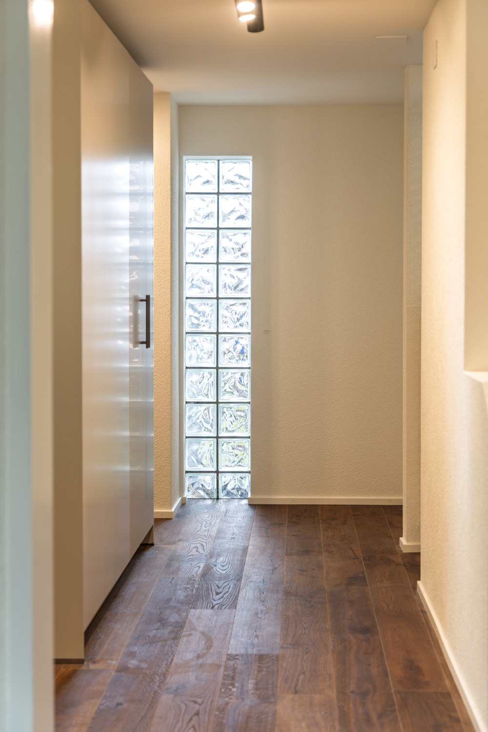 Neue Treppe mit integriertem Wandschrank, öffnend zu Garderobe Entrée.